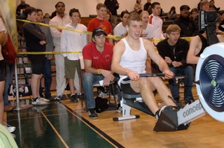 It’s official... our cousin Harley Grandin is a rowing champion! On February 7, Harley won the 11th Annual Peninsula Indoor Rowing Championship in the Lightweight Men’s Division, 2000 meter event. The event was held at Canada College in Redwood, CA. With a time of 6:52.3, Harley also set a new personal record! Harley was in 4th place for most of the race, but he gave a hard finishing sprint to win the very tight race. Second place finished only .4m behind Harley, and the top 3 finished within .3 seconds of each other.