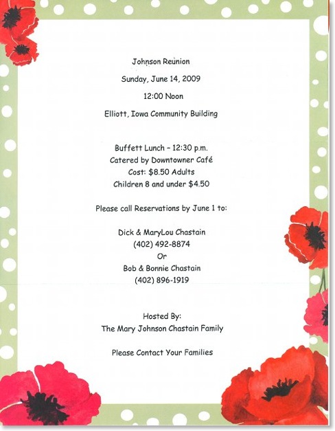 Johnson Family Members invited to attend the Johnson Family Reunion in Elliott, Iowa