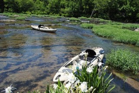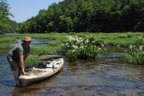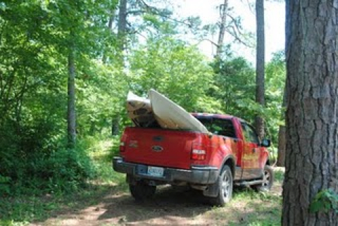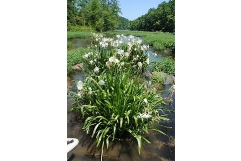 We were invited to go to Birmingham on Sunday and then go with Lady Melanie and Paw to " Pawland"....on the Cahaba River. The Cahaba Lilies bloom every spring and this is the only place they grow so it was a real treat to get to see them. Chuck and I, each were honored with a " Pawland Tee Shirt" before we left for the river ( among other presents). We took the truck and kayaks so we could get up close and personal with the lilies. First we had a picnic on the shore and Lady Melanie gave us a " bounce" to put on our hats to keep the bugs away. As the afternoon went on, the bugs got worse so Lady Melanie and I were using the bounce for " veils"....lol. There wasn't enough water in the river to kayak so we kept getting stuck on the rocks. Anyone who wanted to see the lilies up close, could have just waded out to them. We did go down the river a piece but paid for it because we had to wade back, pulling the kayaks over the rocks and little rapids. It sure was a work out but worth it to see the beauty of the Cahaba River. Before we headed back to Birmingham, Paw drove us all around the land to show us the three camp sites and his "bees" and such. It sure was a wonderful, fun day. Thank you Paw, for sharing Pawland with us!