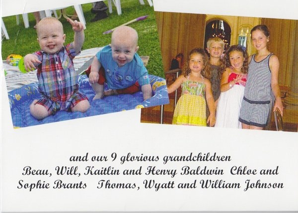 We are so lucky to have two of our children here in Houston - Luke and Peter Johnson. We are able to see them and their families for casual dinners and help one another celebrate birthdays and holidays. We love to barbeque together and Pen and I get lots of hugs from Thomas, Wyatt and William. You should see them in action! Zoom!