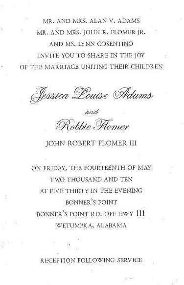 Wedding Invitation for John Robert "Robbie" Flomer, III